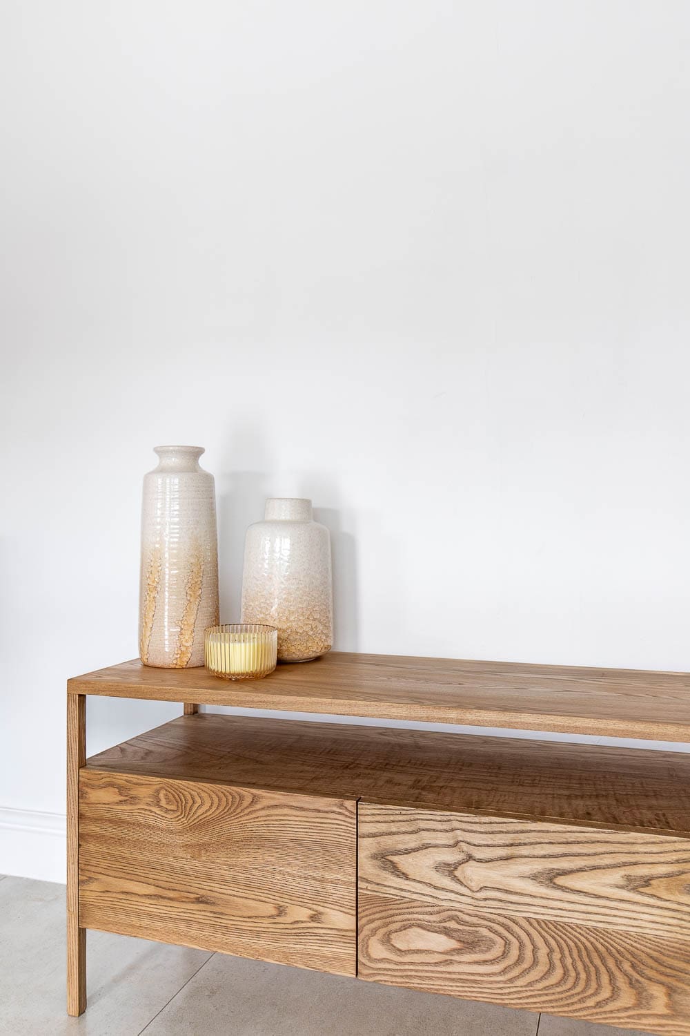 - Unit displayed in pictures is Ash wood with a medium oak stain.